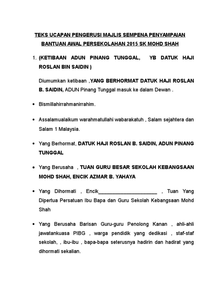 Teks Ucapan Bantuan Khas Awal Persekolahan 2015 Pdf